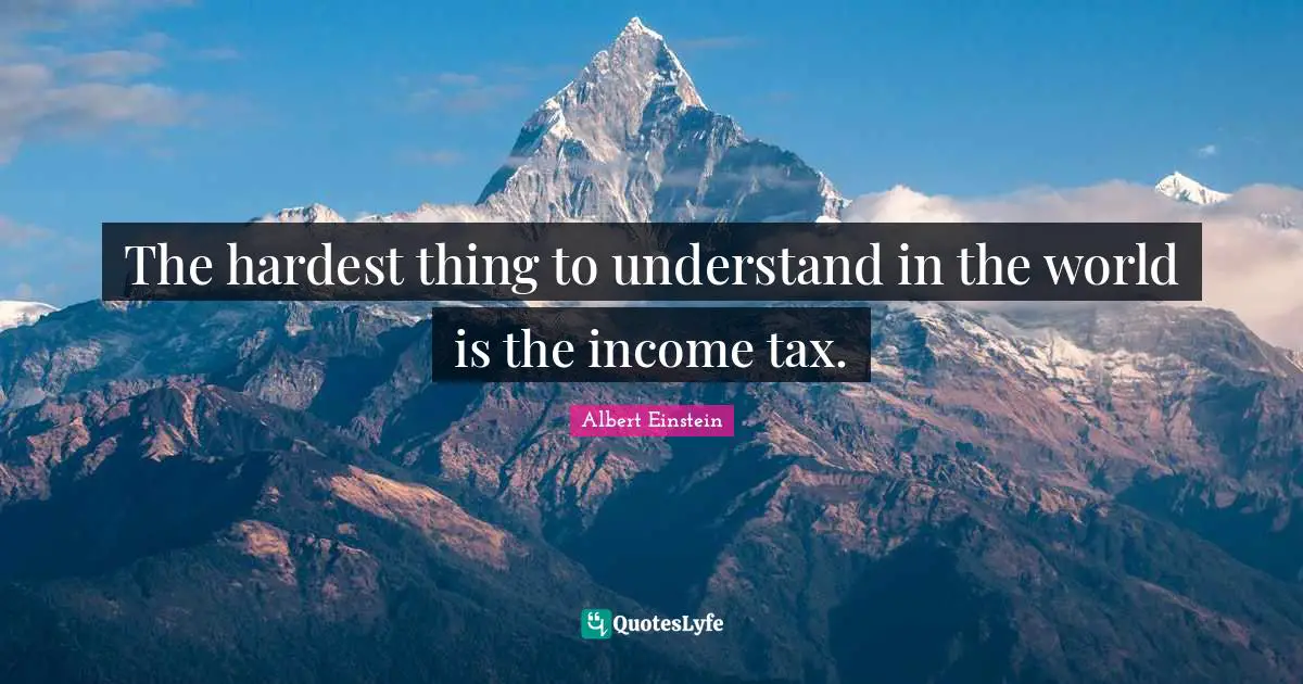 The hardest thing in the world to understand is the income tax. This is too difficult for a mathematician. The Ultimate Quotable Einstein p479 Princeton University Press.