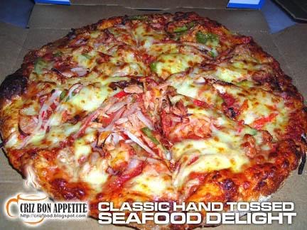 The Hand Tossed pizza crust is thinner than the Handmade Pan but thicker than the Crunchy Thin. It is a fun pizza and Ive always wondered what it would be like to try to replicate it. In terms of flavor Dominos is fine.